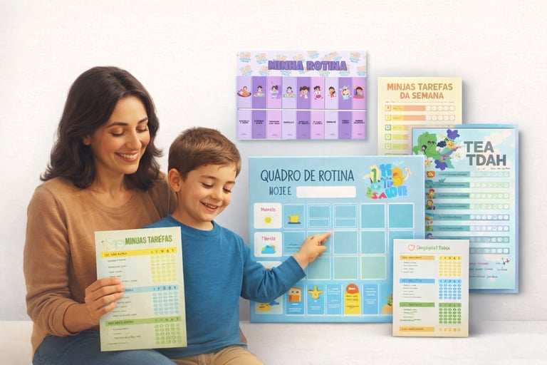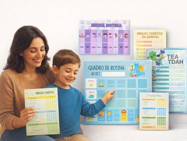 Um sistema visual que seus filhos realmente querem seguir… Totalmente personalizável. Você compra uma vez e imprime quantas vezes quiser.